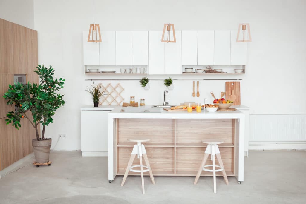 Jeśli planujesz całkowitą zmianę aranżacji kuchni, nie czuj się ograniczony obecnym układem swojej kuchni. Kluczem do tego, aby Twoja mała kuchnia wydawała się większa, jest stworzenie efektywnej, sprytnej przestrzeni z maksymalną ilością miejsca do przechowywania. Układy galeryjne są idealne, ponieważ długie, ścienne szafki dadzą Ci optymalną przestrzeń do przechowywania i blat roboczy. Dodatkowo unikniesz pozostawienia martwych obszarów uwięzionych w rogach kuchni. Jeśli masz obok salon, spróbuj włączyć bar śniadaniowy łączący pokoje do swojego projektu. Piękno bufetu polega na tym, że daje Ci opcję jadalni, która może również pełnić też funkcję dodatkowego blatu roboczy.